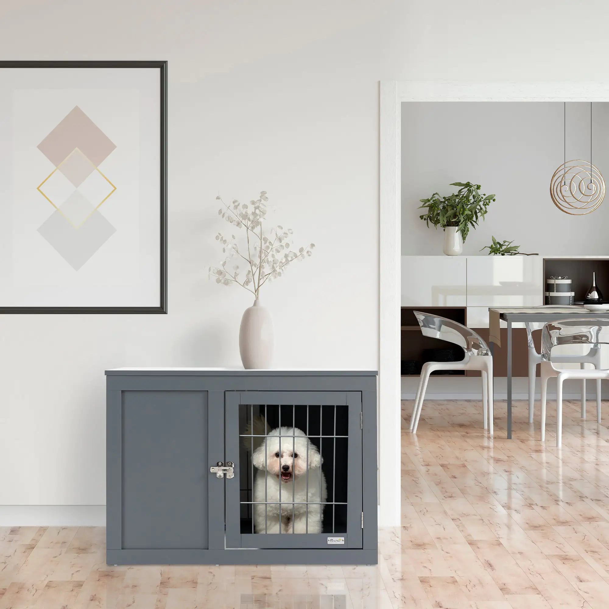 Multi-purpose: This steel-wood combination dog cage can be used as a dog crate and side table.