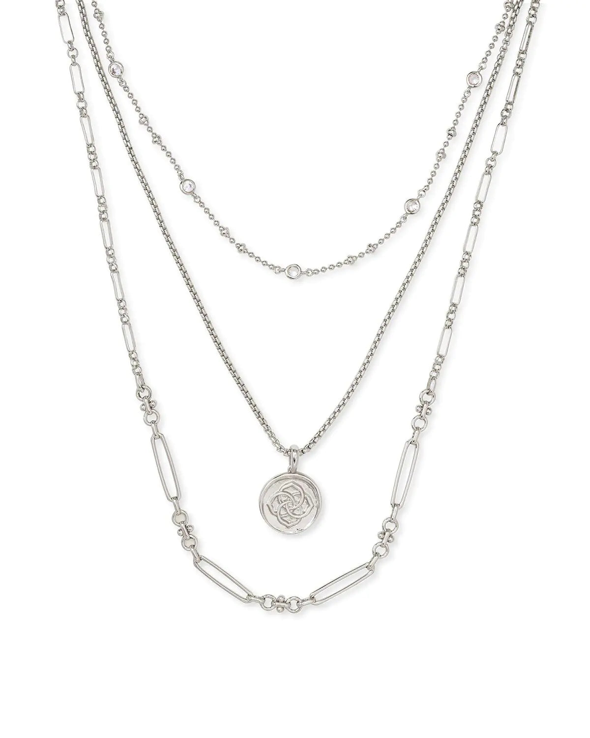 Kendra Scott Medallion Triple Strand Necklace in Silver-Plated Brass Fashion Jewelry for Women Rhodium