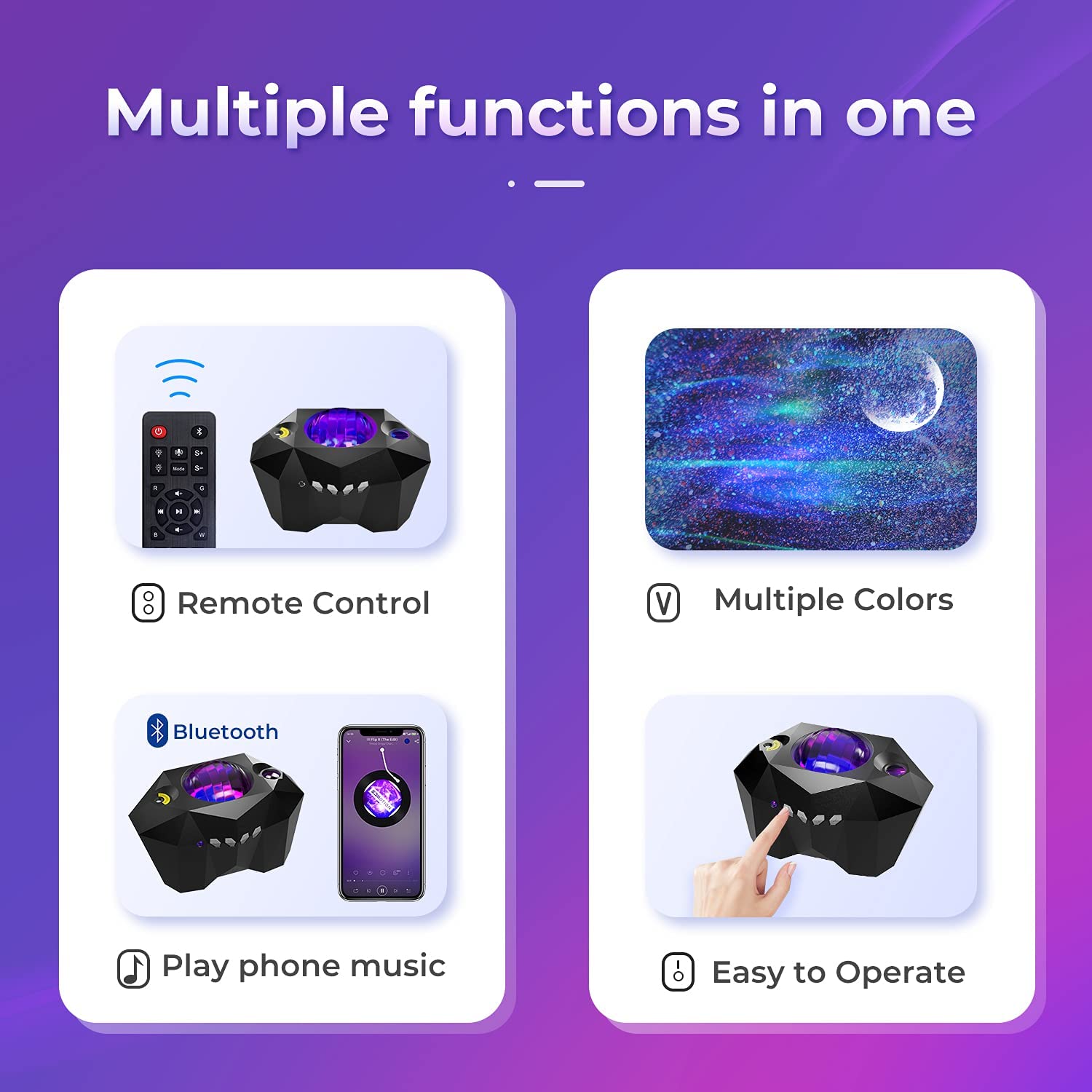 Galaxy Light Projector Music Sync Color Changing Moving Aurora Wave,Built-in Music Speaker,Remote & Bluetooth Light Projector